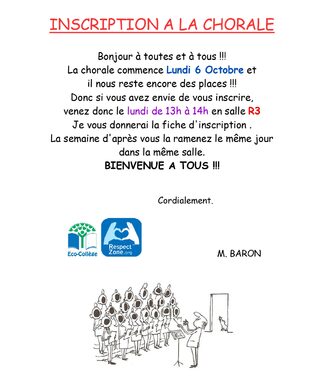 La chorale du collège reprendra lundi 6 octobre !